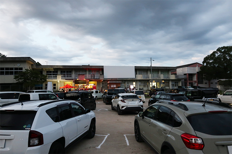 日が沈むころ、校庭には約40台の車がぞくぞく集まってきました。