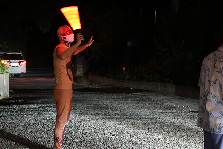 車の誘導をしながら、みなさんをお見送り。良い人体模型〜(笑)