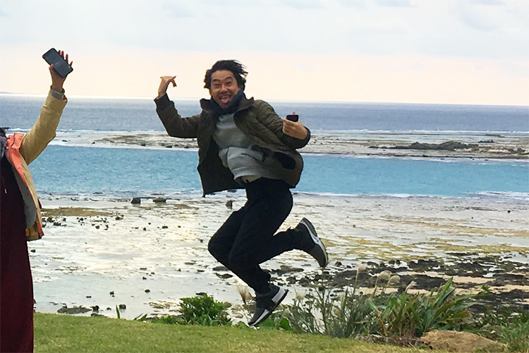 奄美空港に着き、ミニバン3台を借りて、まずは海へー!!