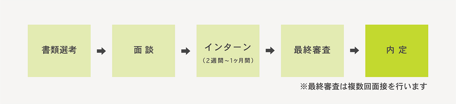 応募後、2週間以内に書類選考の結果をご連絡いたします。