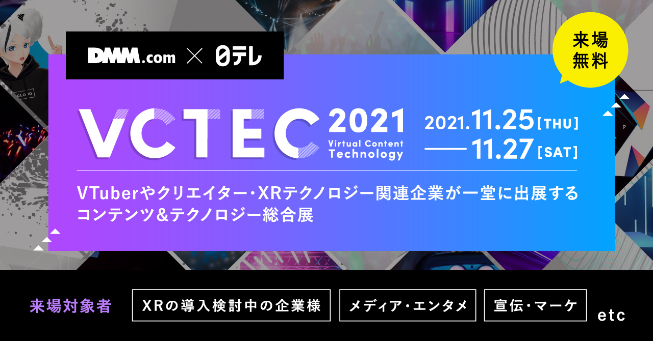 VCTEC 2021はVTuberやクリエイター・XRテクノロジー関連企業、個人が出展対象のオンライン展示会です。