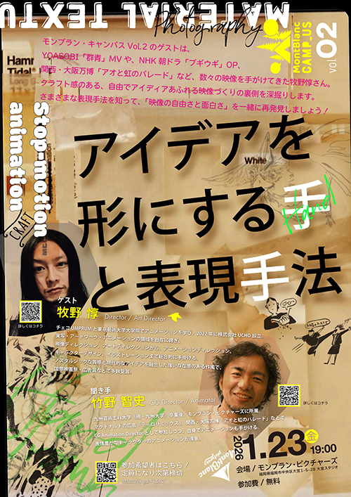 Vol.2のゲストは、YOASOBI「群青」MVや、NHK朝ドラ「ブギウギ」OP、関西・大阪万博「アオと虹のパレード」など、数々の映像を手がけてきた牧野惇さんです!