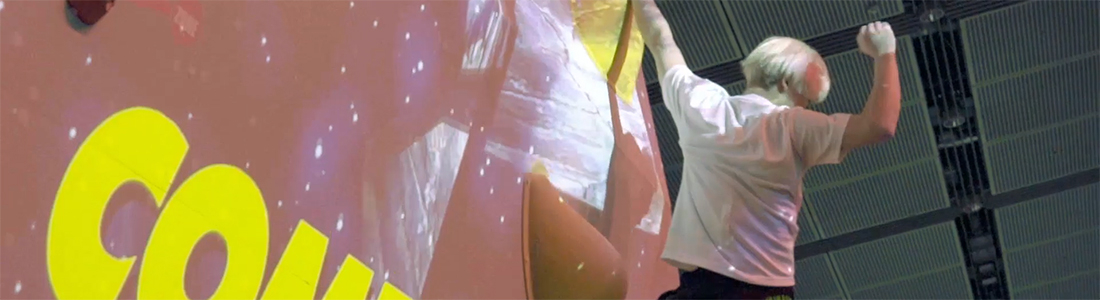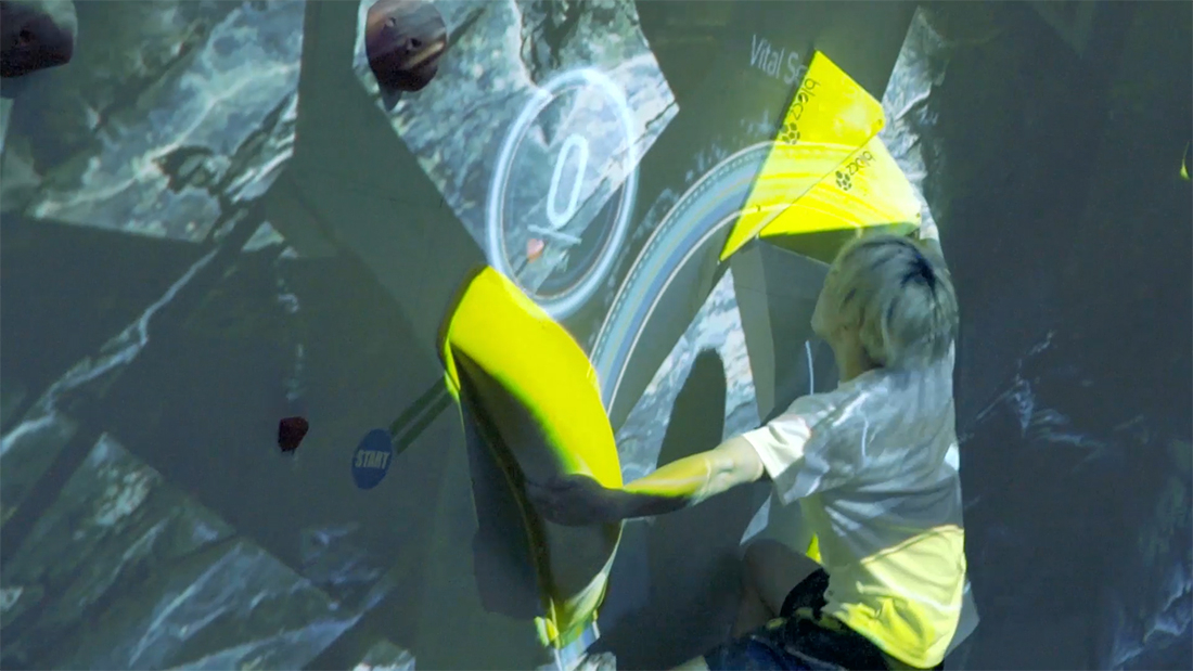 最新のテクノロジーを効果的に訴求するだけでなく、どデカい壁を使った迫力の映像でボルダリング競技の魅力を高める演出を実現するため、プリレンダー映像とジェネラティブCGを組み合わせたハイブリッドな映像表現を行いました。