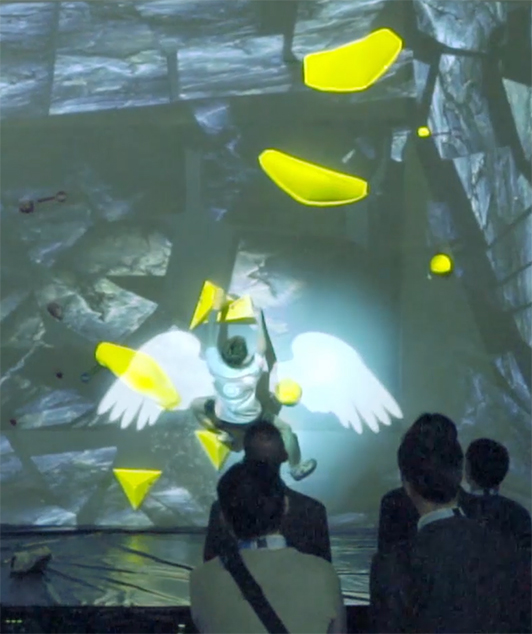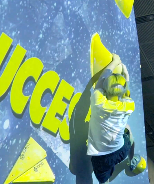 迫力の映像が、大きな壁をスピーディーに登る選手の動きに気持ちよく反応してヌルヌルと動きます。