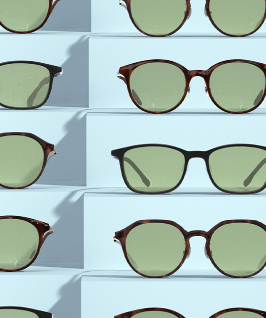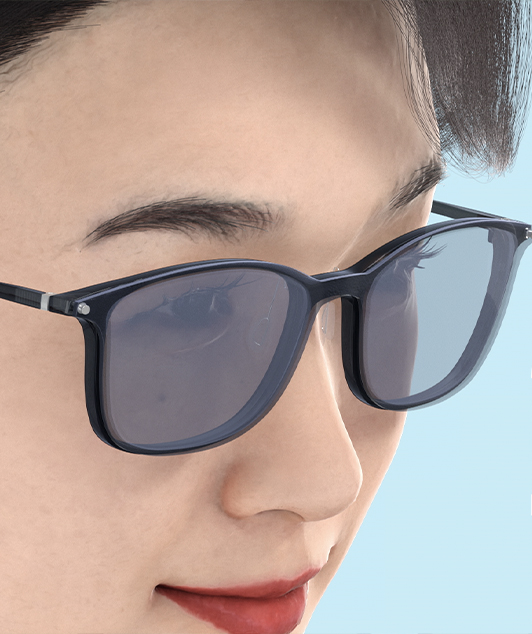 通常レンズ、サングラス、ブルーライトカットレンズの3種類のレンズを