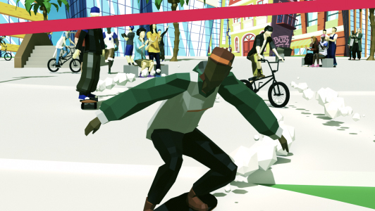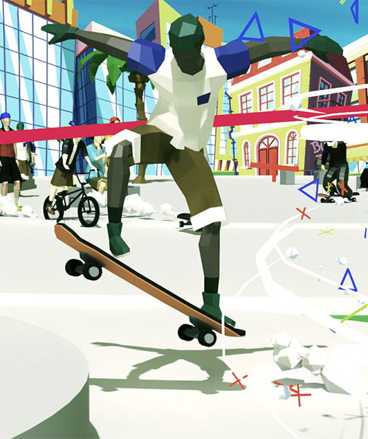 6種類のアニメーションで表現された世界を気持ちよく駆け抜け、最後にMIXIのオフィスに辿りつきます。
