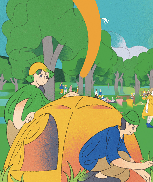 世界中をワクワクや笑顔で満たしていく様子を描きました。