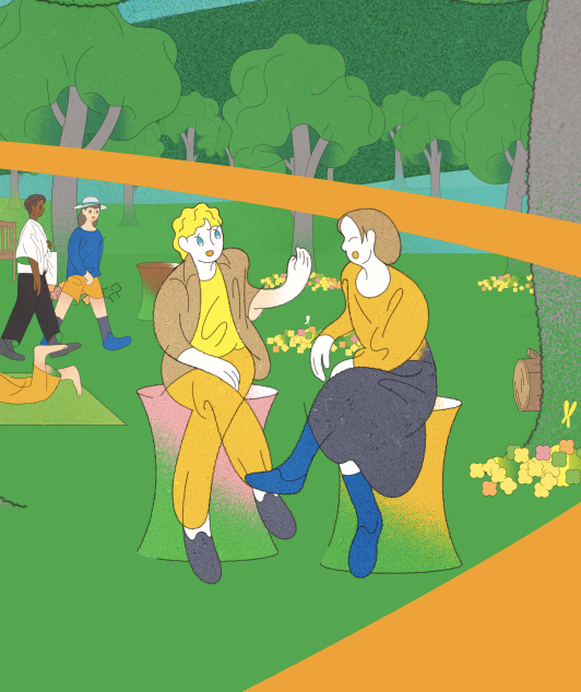 「心地よさ、あたたかな気持ち=温かいつながり」を表す「オレンジ」のラインが、