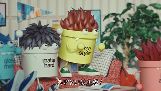 LIPPS HAIRWAX TVCM LIPPS HAIRWAX TVCM ANIMATIONCM Lipps ヘアワックスのTVCM 「Playful Hair!」篇。 モンブランでは、CGのディレクション、アニメーション、コンポジットを担当しました。 ワックスの特徴にあったキャラクターたちが、ご主人に自分をアピールする様子を表現。 ポーズや身振りなどでもそのキャラクター性が出るようにアニメーションさせました。 蓋が口になっているデザインなのですが、動かしてみるとすごく効果的で面白いキャラクターになりました! TEAM Satoshi Takeno CG Director, CG Animator Yuta Kanazawa Production Manager Takuma Yamahira Lighting, Rendering Director : Atsushi Makino (ucho) CG Modeler : Kei Kidera(HASH) Production Manager : Koki Irie(HASH) CG Produser : Kouhei Miki (HASH) Match Move Artist : Yasuhiro Kato Compositor : Leonie-Marie Lei Arimura Production : Robot IMAGES MIXI OFFICE ENTRANCE LED CONTENTS ナオキマン・ホラーショーオープニング BACK TO LIST