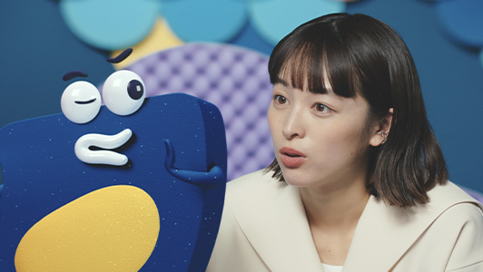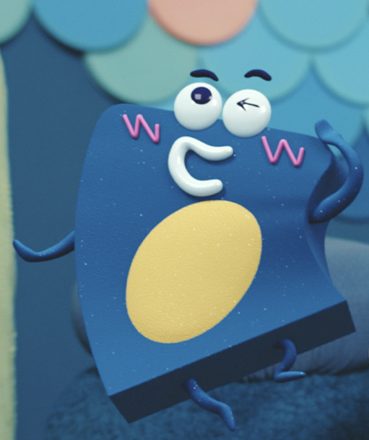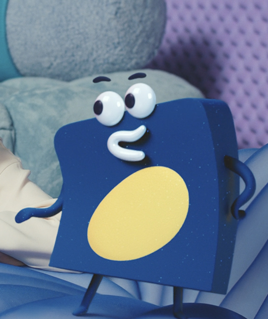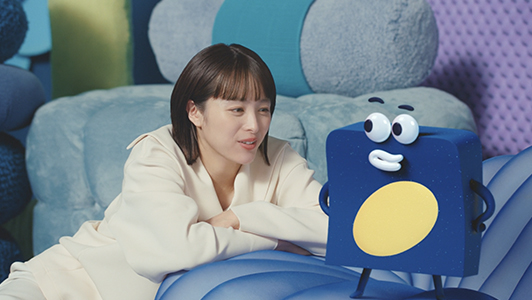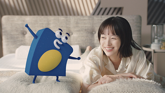 イノアッくんはイノアックで生まれたウレタンの妖精なので、形を自由自在に変形させて愉快で楽しいアニメーションにしました。