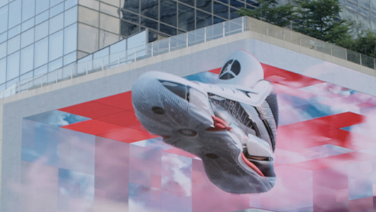 シューズの残像とモーションコントロールカメラで捉えたようなカメラワークで表現しました。