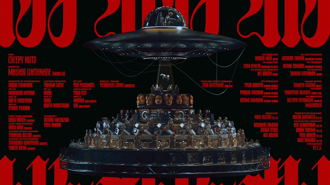Creepy Nuts 「オトノケ」MV Creepy Nuts「OTONOKE」MV ANIMATIONPV Creepy Nuts「オトノケ」のミュージックビデオ。 モンブランではCGディレクション含めフェナキストスコープのデザイン、アニメーションを担当しました。 フェナキストスコープは、Creepy Nutsのお二人のようなかっこいい且つ、 チョケ感のある要素で構成しています。 CGならではのレイアウトにこだわりつつ、小ネタも仕込みつつ、情報量マシマシのシーンになりました! 全体通してカオスなMVに仕上がっているので、是非何度も見てください! TEAM Satoshi Takeno CG Line Producer Taro Adachi CG Director Ayano Tamura CG Designer CG Producer:Kouhei Miki (HASH) CG Modeling Director : Kei Kidera (HASH) CG Modeler : Toshiki Watanabe (HASH) IMAGES 大阪市下水道科学館 キユーピーとヤサイな仲間たちヤサイなクエスト篇 BACK TO LIST