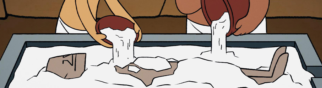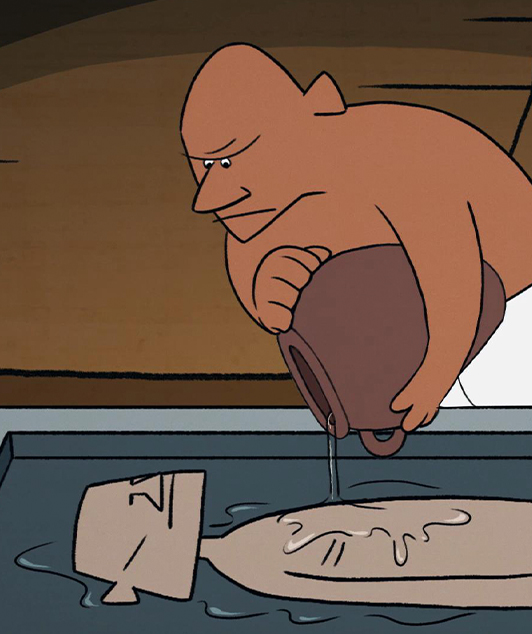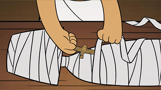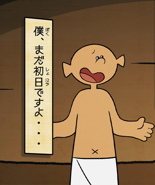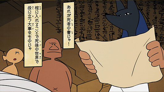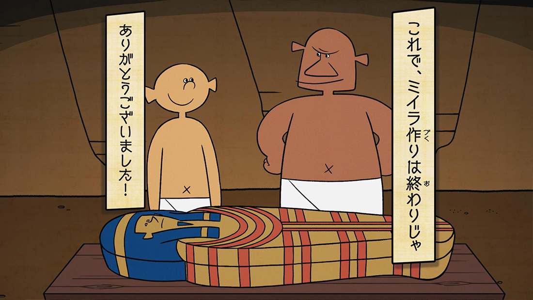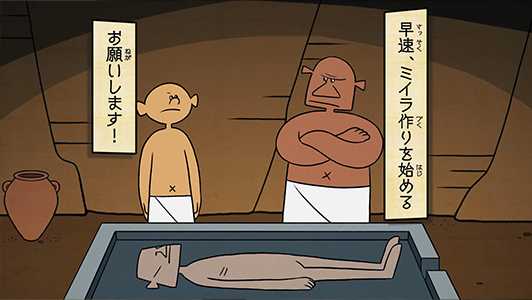 展覧会内で鑑賞できる、「ミイラの作り方」のアニメーションを制作しました。