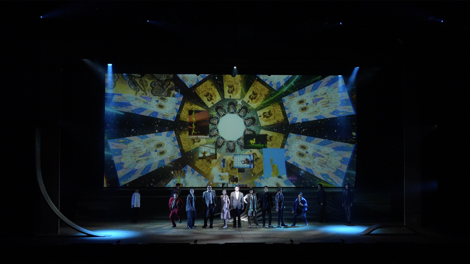 観客にクライマックスの高揚感、ダイナミックな視覚効果、進んでいく時代の変遷を体感してもらえるように、スクリーンの奥に向かっていくカメラワークとテンポ感のあるモーショングラフィックスを駆使しながら作成しました!