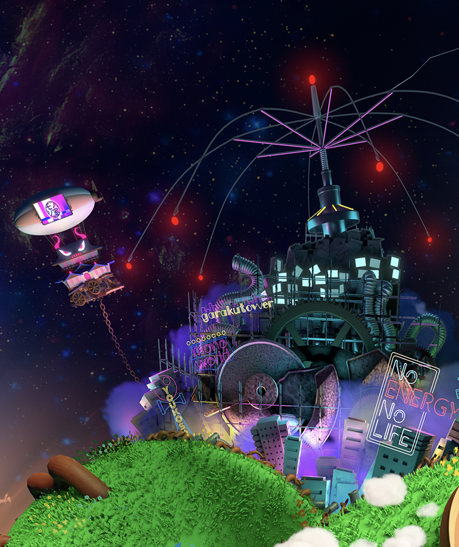 モンブランでは、自然豊かな異世界「ジオワールド」のCG制作、不思議な精霊「ジオノコ」のCGモデリング・アニメーション、オープニング&エンディング映像などの制作を担当しました。