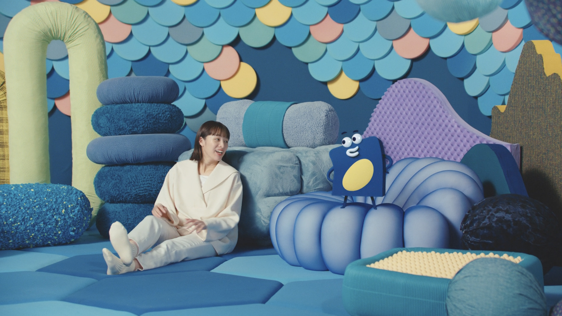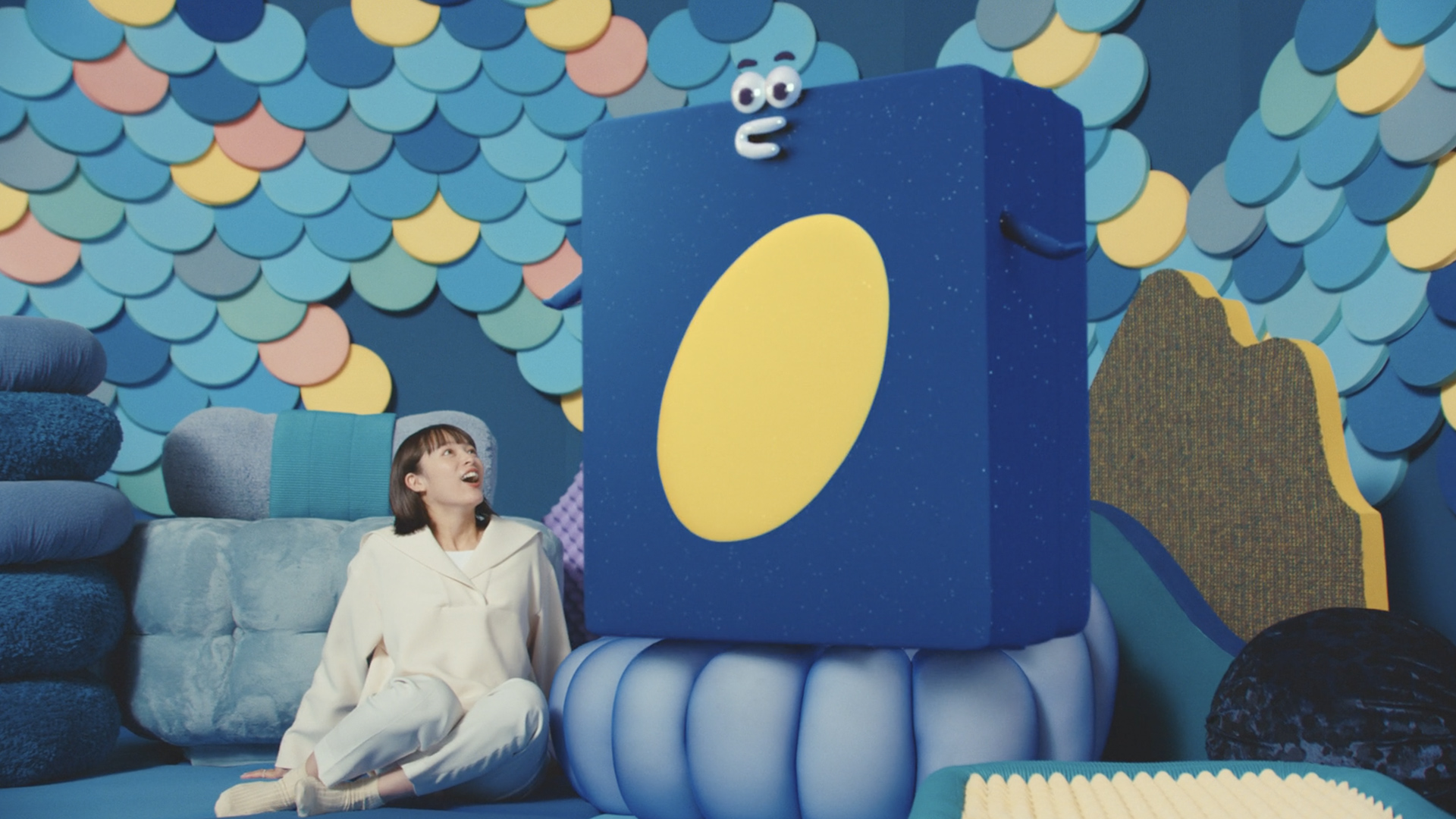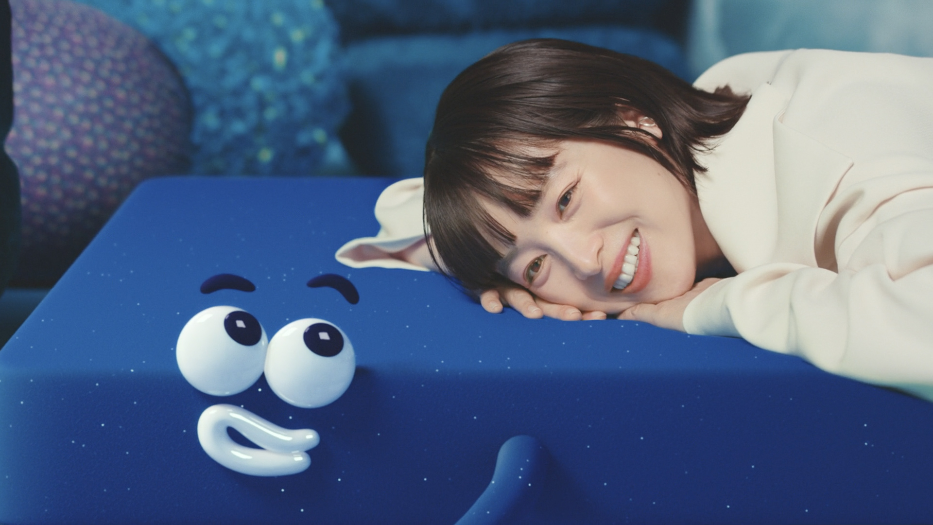 イノアッくんはイノアックで生まれたウレタンの妖精なので、形を自由自在に変形させて愉快で楽しいアニメーションにしました。