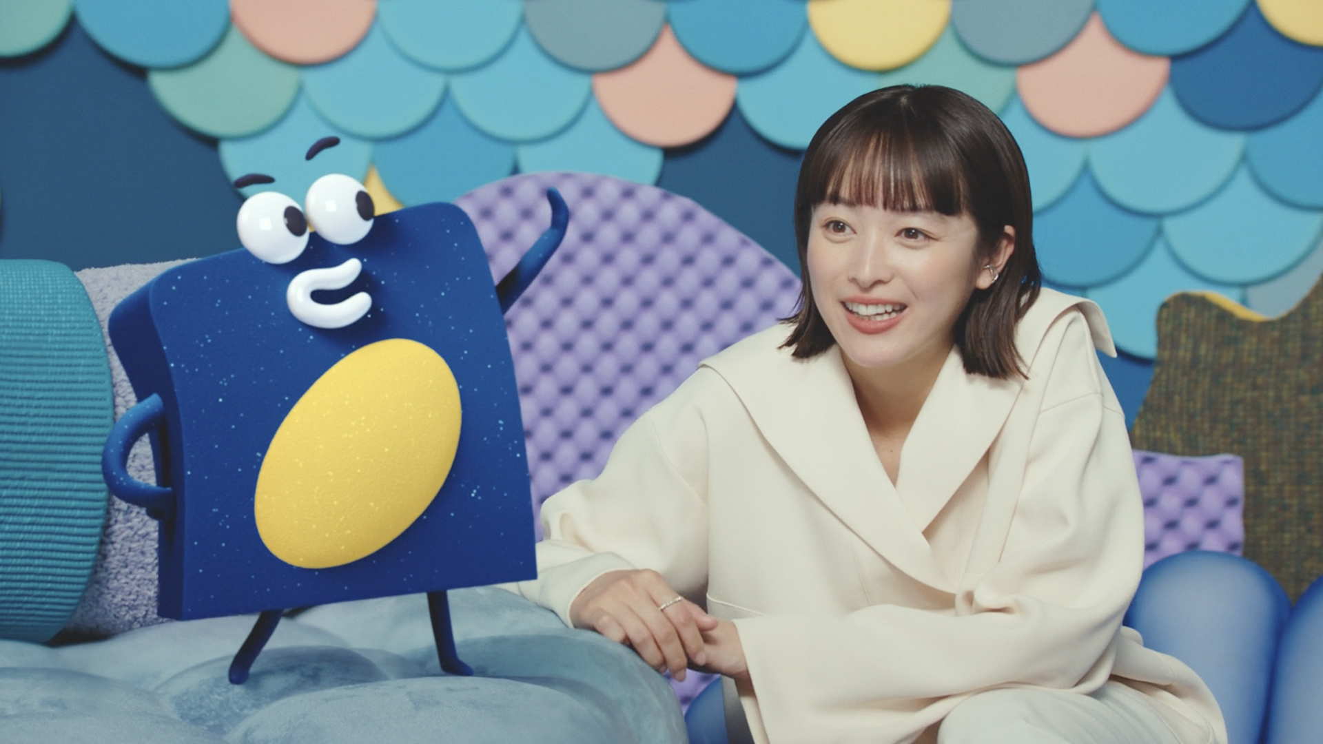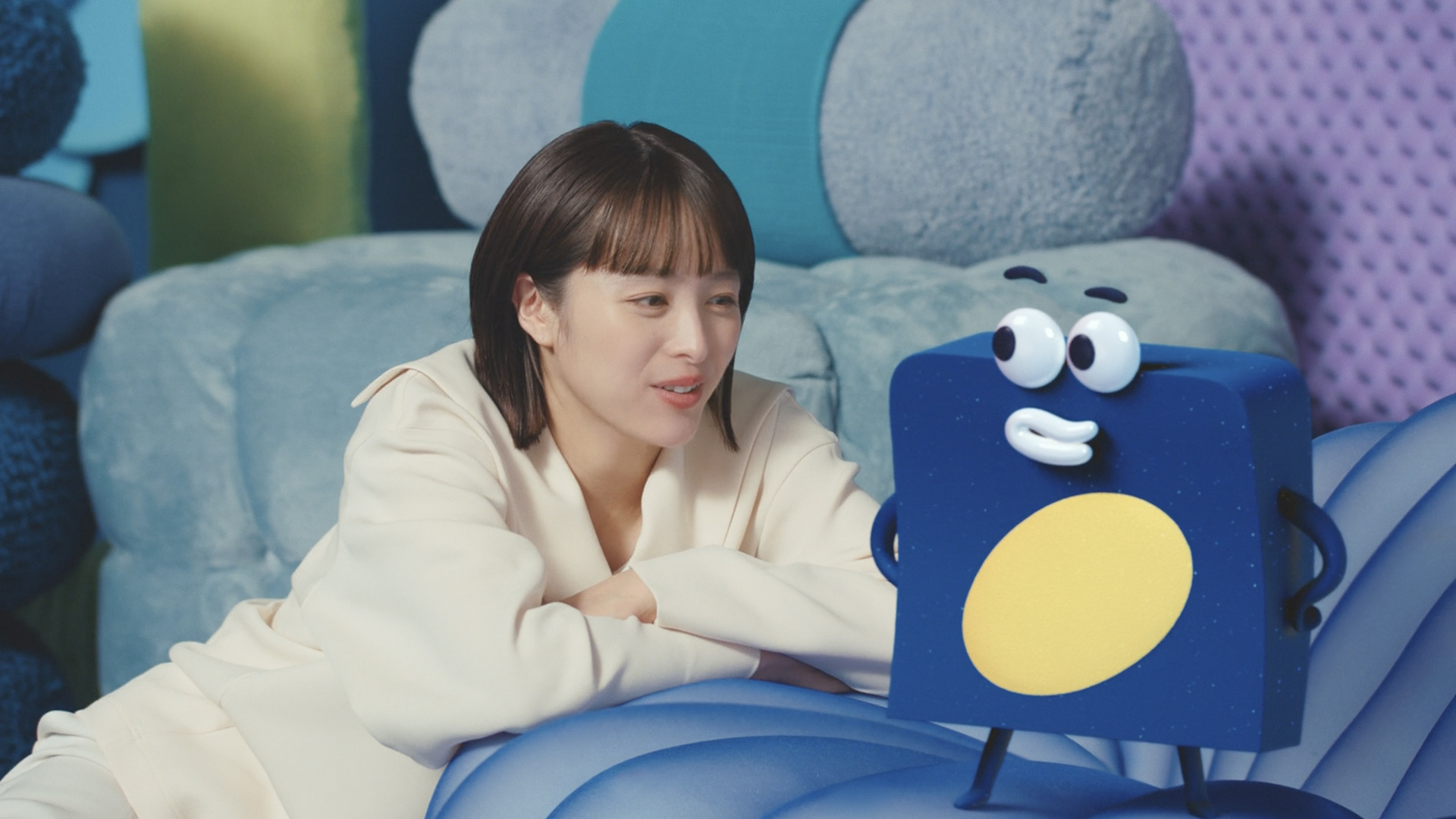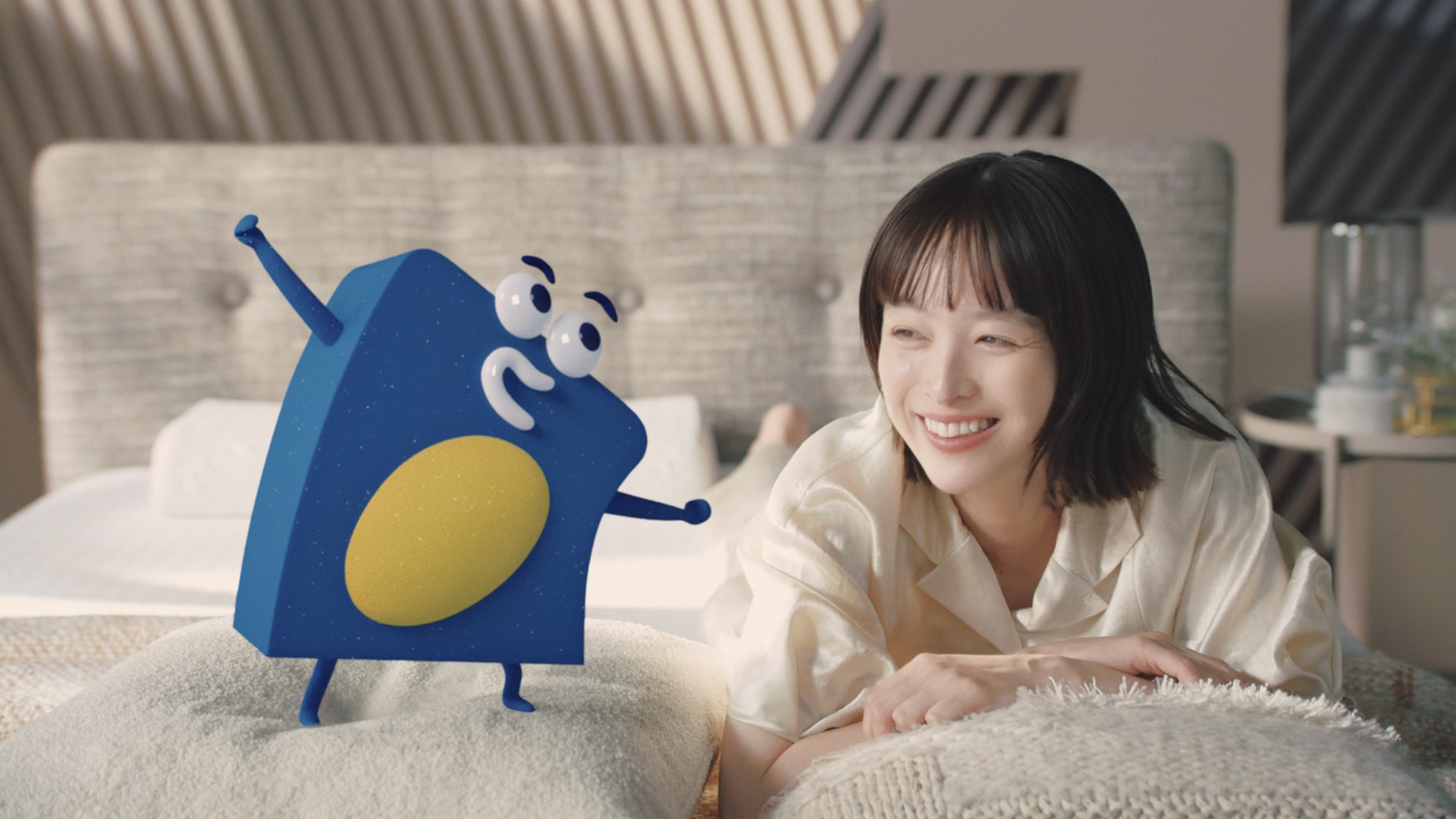 イノアッくんはイノアックで生まれたウレタンの妖精なので、形を自由自在に変形させて愉快で楽しいアニメーションにしました。