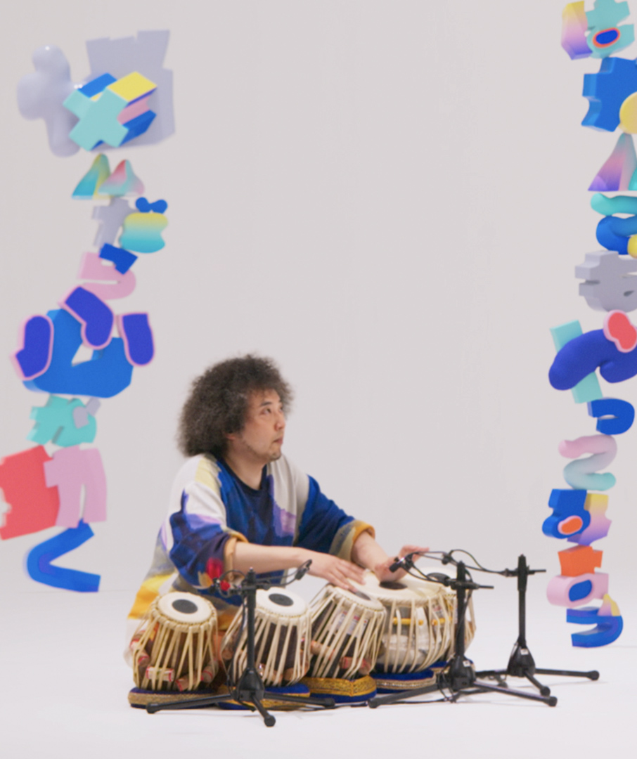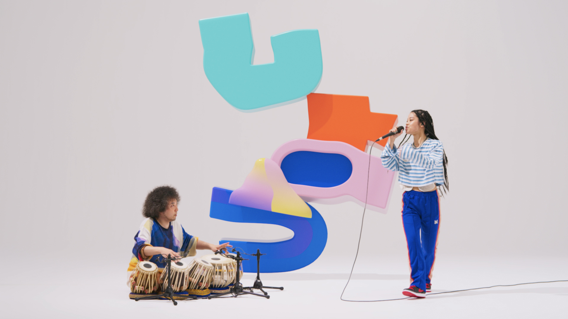 タブラ奏者のU-zhaanさんのリズムにあわせて、シンガーのxiangyuさんが企業理念をラップで表現。
