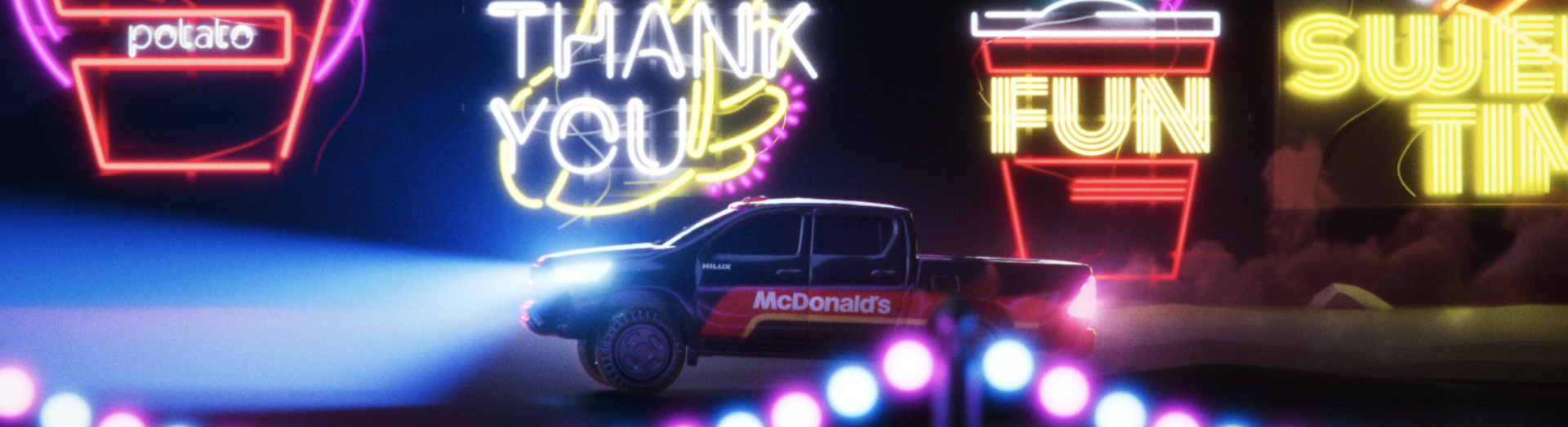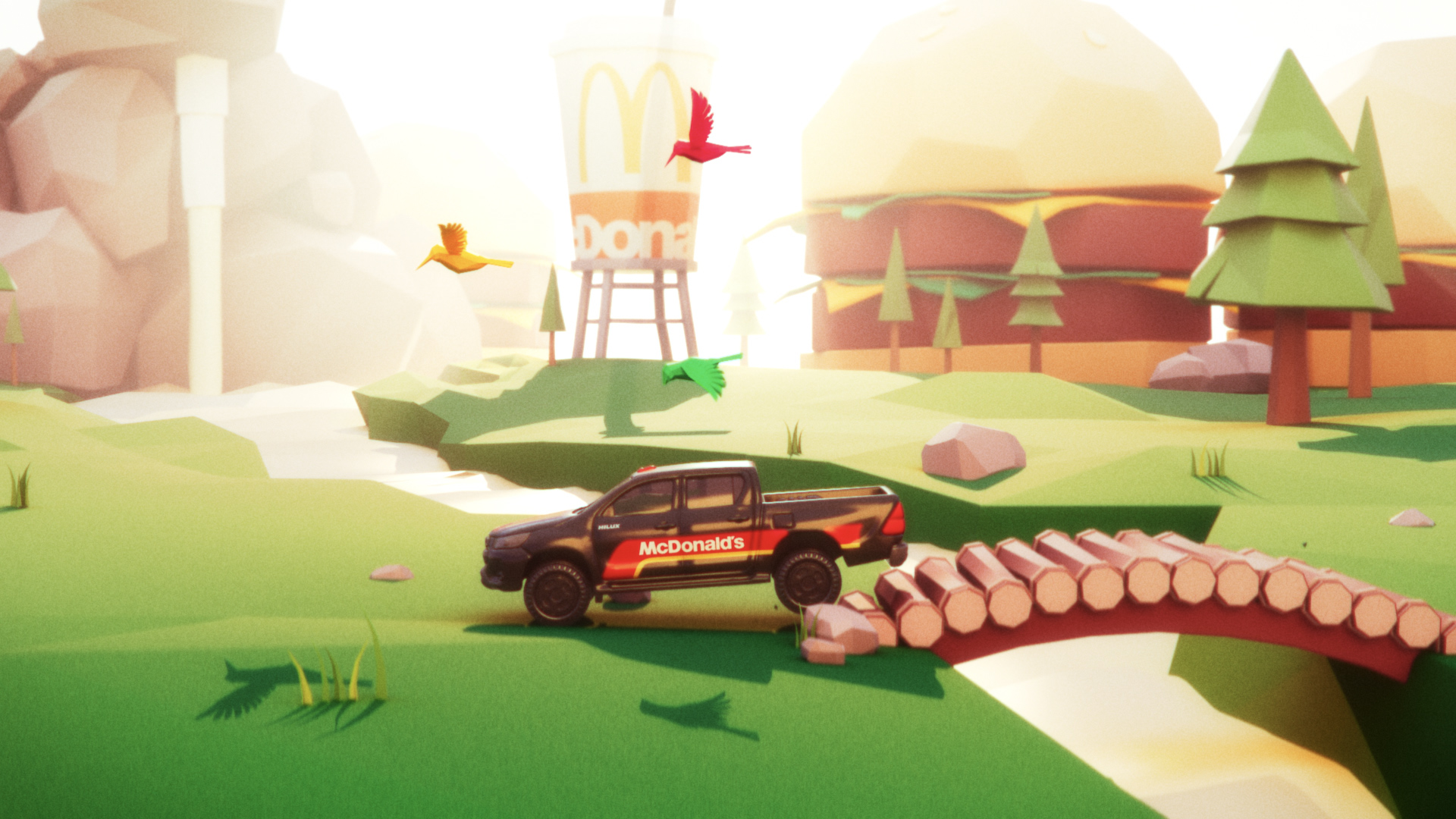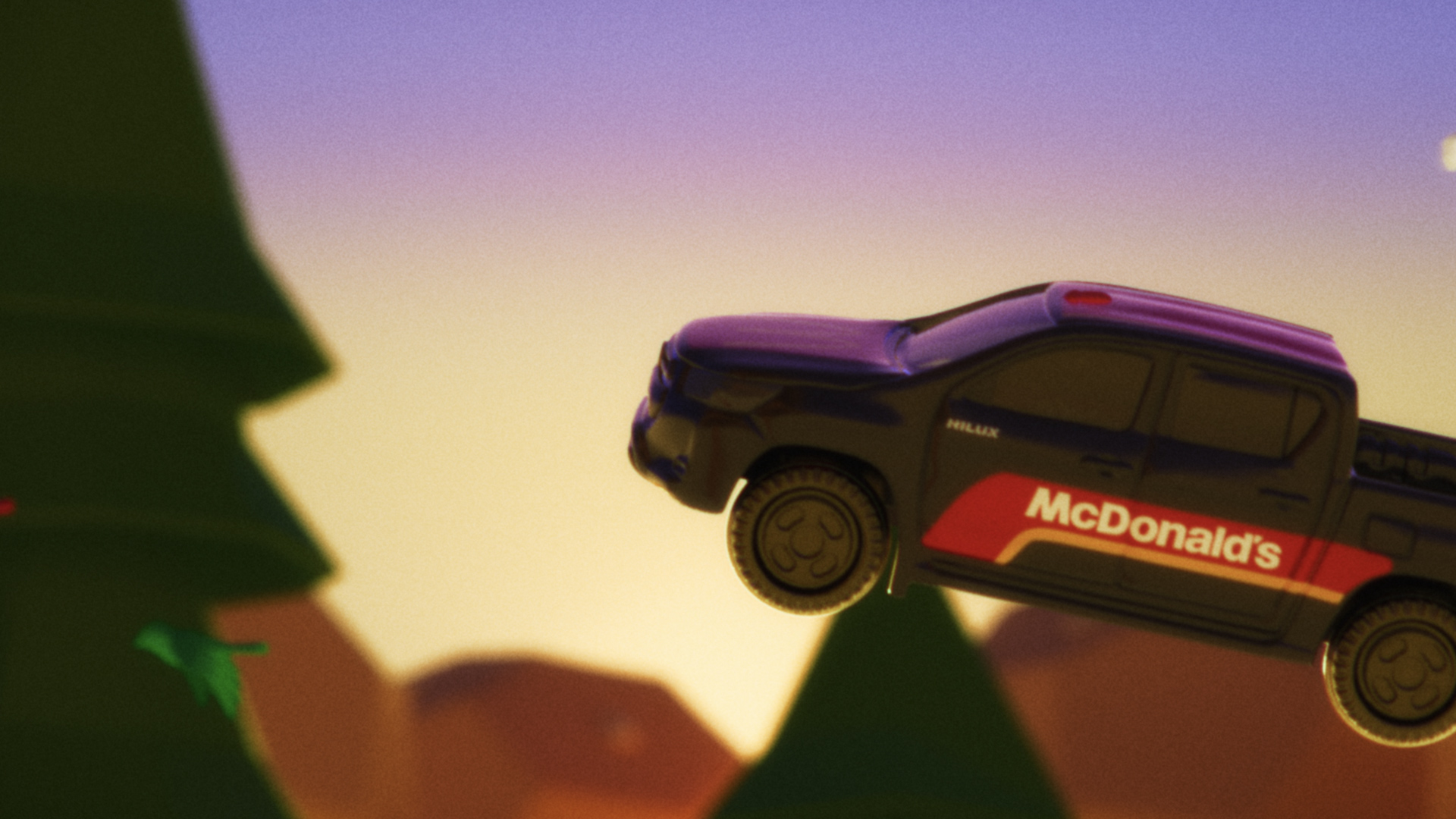 TOYOTAのハイラックスとマクドナルド ハッピーセットのコラボレーションムービー。モンブランでは、CGディレクション、アニメーション、コンポジットを担当しました。