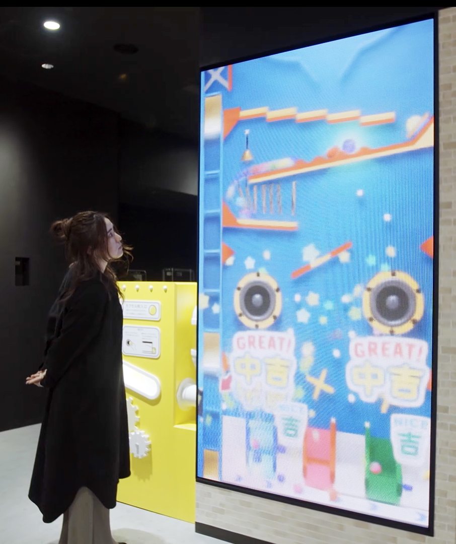 エントランス映像の一角には、空カプセルを投入することで、映像中に自分のカプセルが出現するインタラクティブな仕掛けもあり、ちょっとした体験ができるコンテンツになっています。