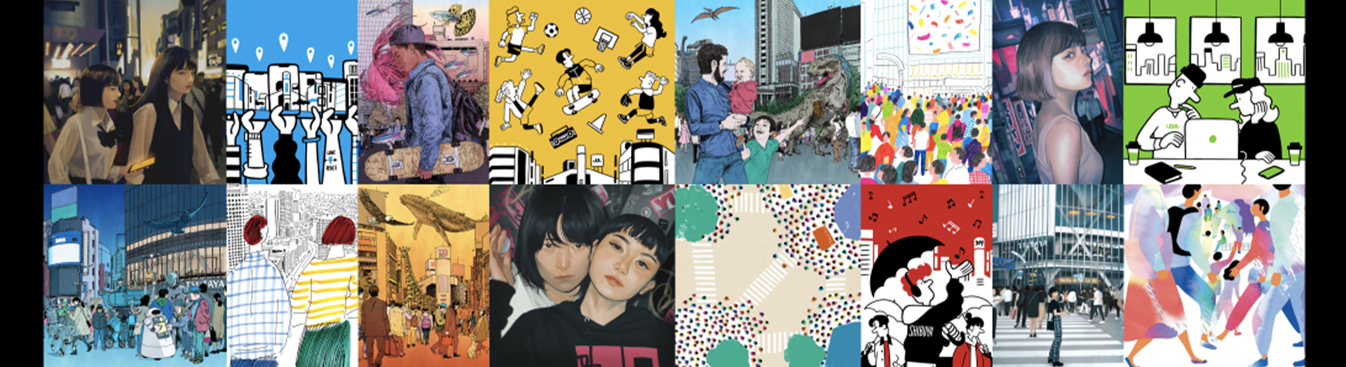 渋谷の街に集まる様々な人の現在・未来の姿を4名のイラストレーターの手で具現化。
