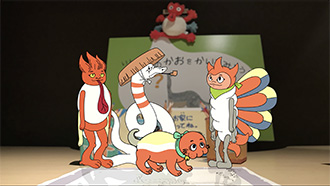 戦国時代に描かれたものとは思えないくらい、とてもチャーミングな原書の絵をもとに、アニメーションにマッチするように、さらにキャッチーに可愛らしく仕上げていただきました。