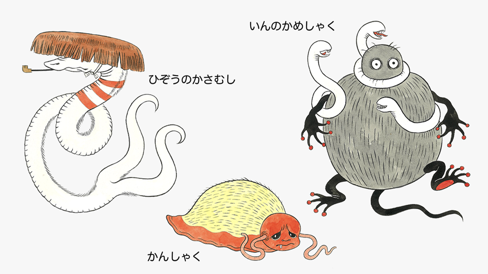 この『針聞書』に登場する、”キモカワイイ”病魔たち「はらのむし」が九博の中で悪事をはたらくコメディアニメーションシリーズを制作しました。