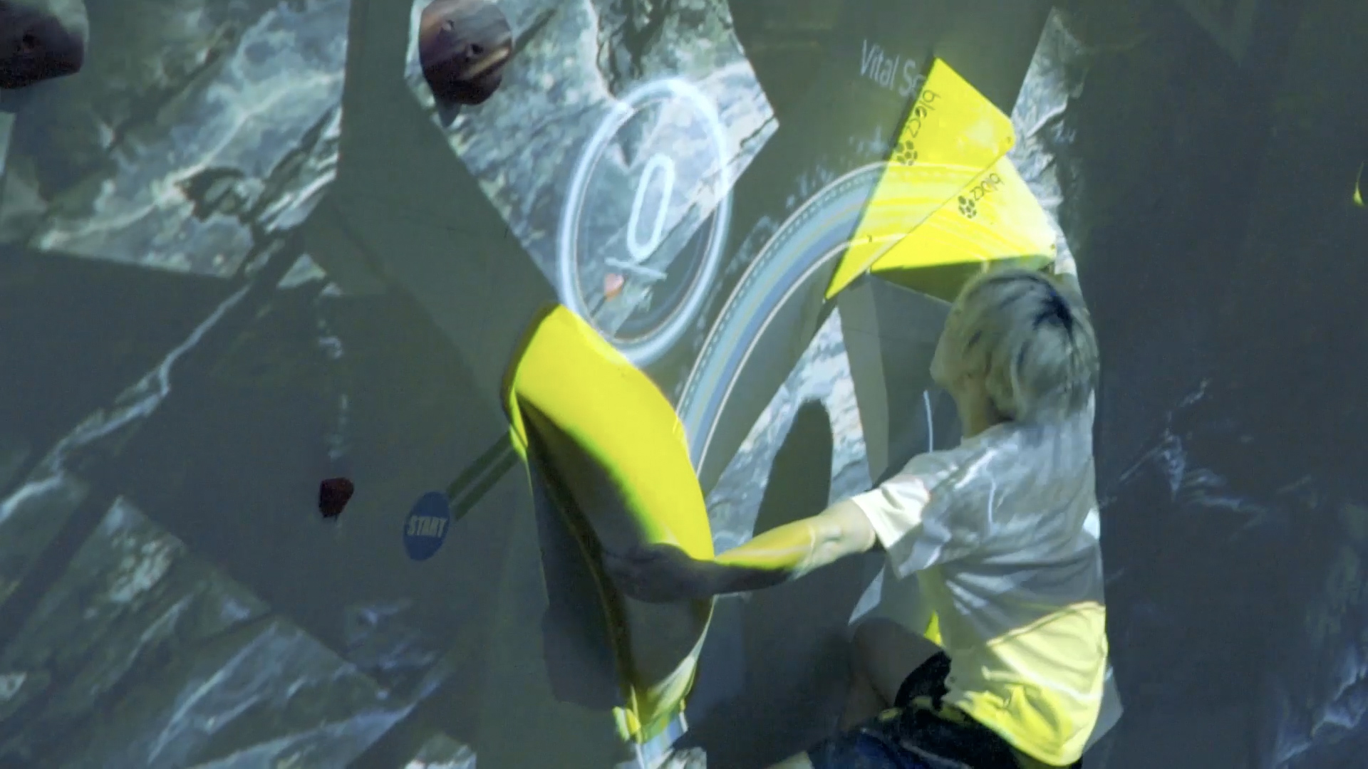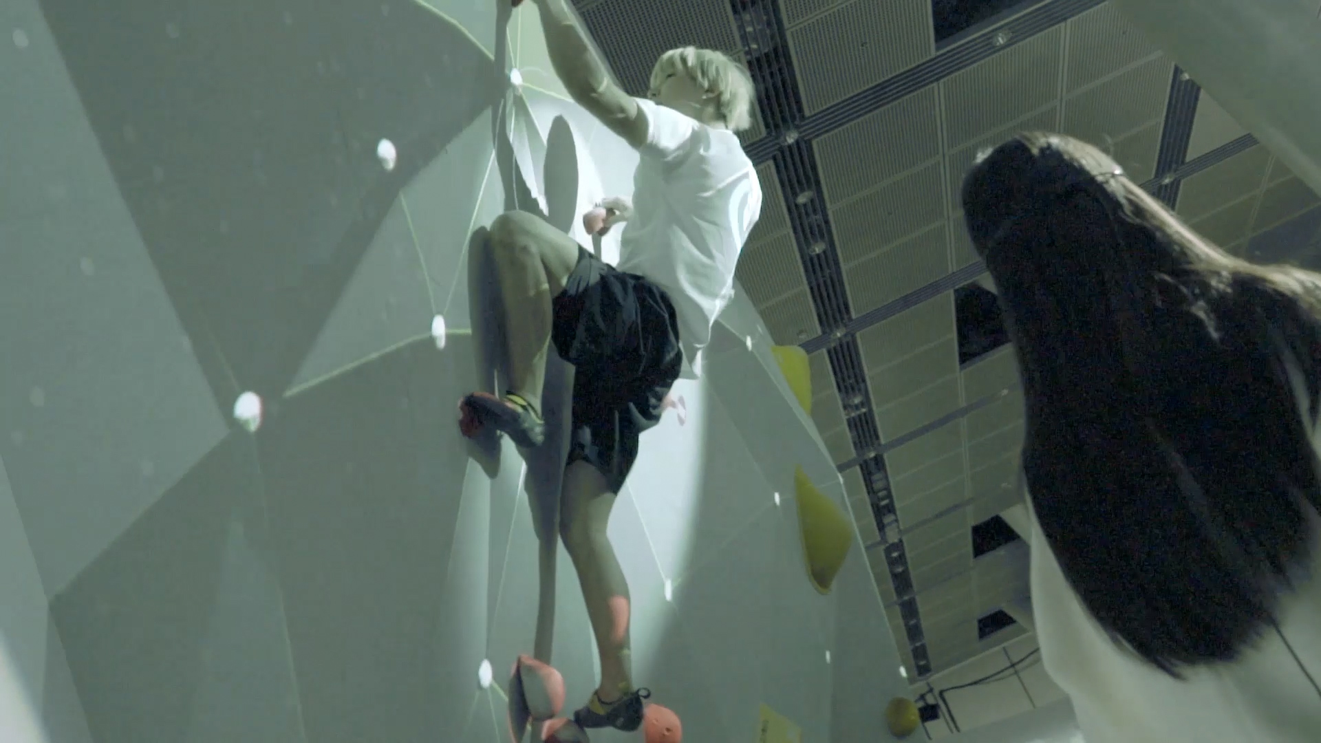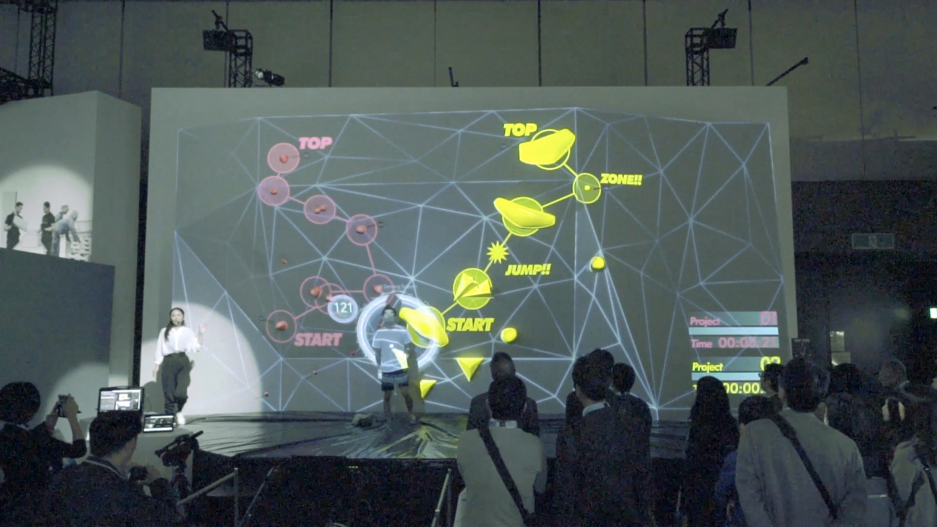 最新のテクノロジーを効果的に訴求するだけでなく、どデカい壁を使った迫力の映像でボルダリング競技の魅力を高める演出を実現するため、プリレンダー映像とジェネラティブCGを組み合わせたハイブリッドな映像表現を行いました。