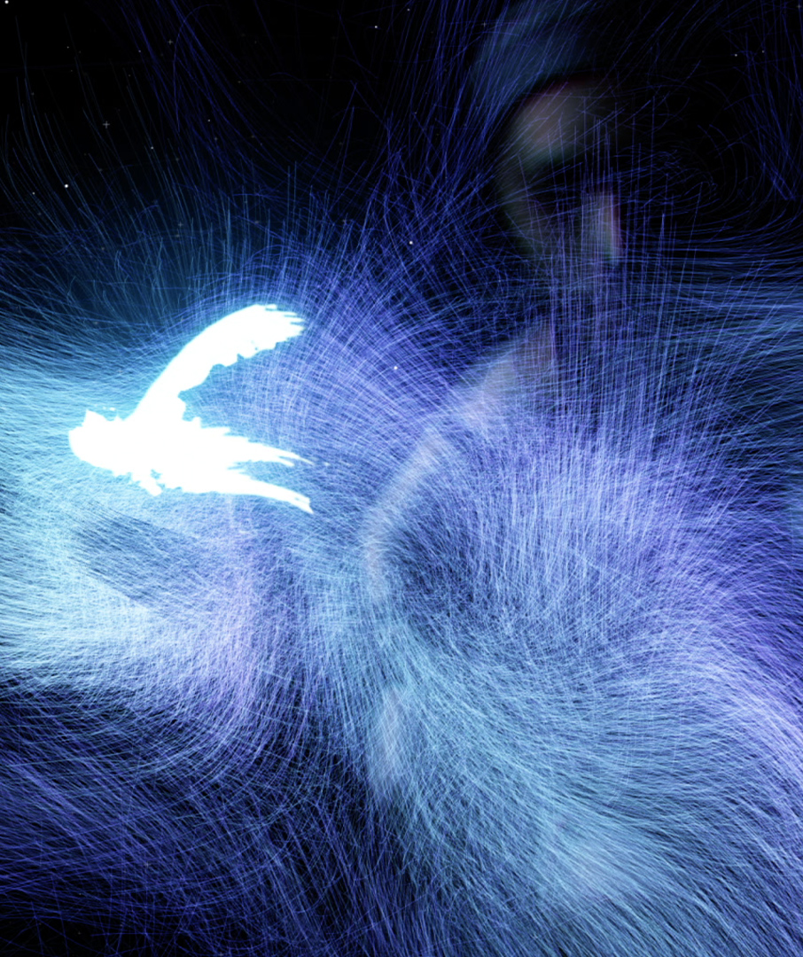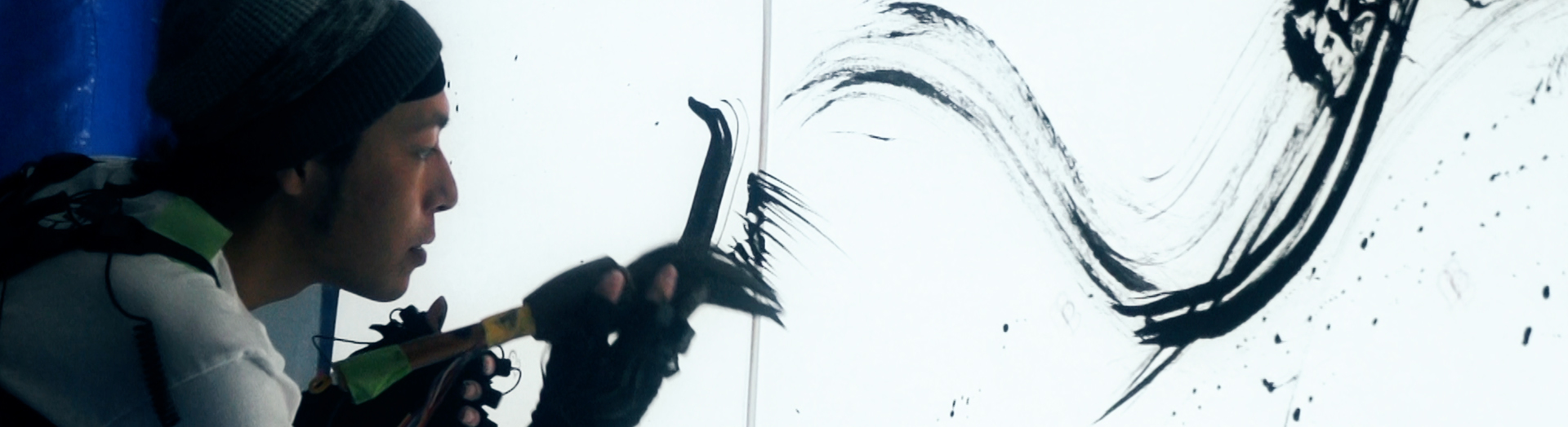 墨絵の中にある、目に見えない作家の身体性を紐解き、映像表現として再構成。墨絵と同時に空間に提示することで、墨絵の新しい鑑賞体験を生み出します。
